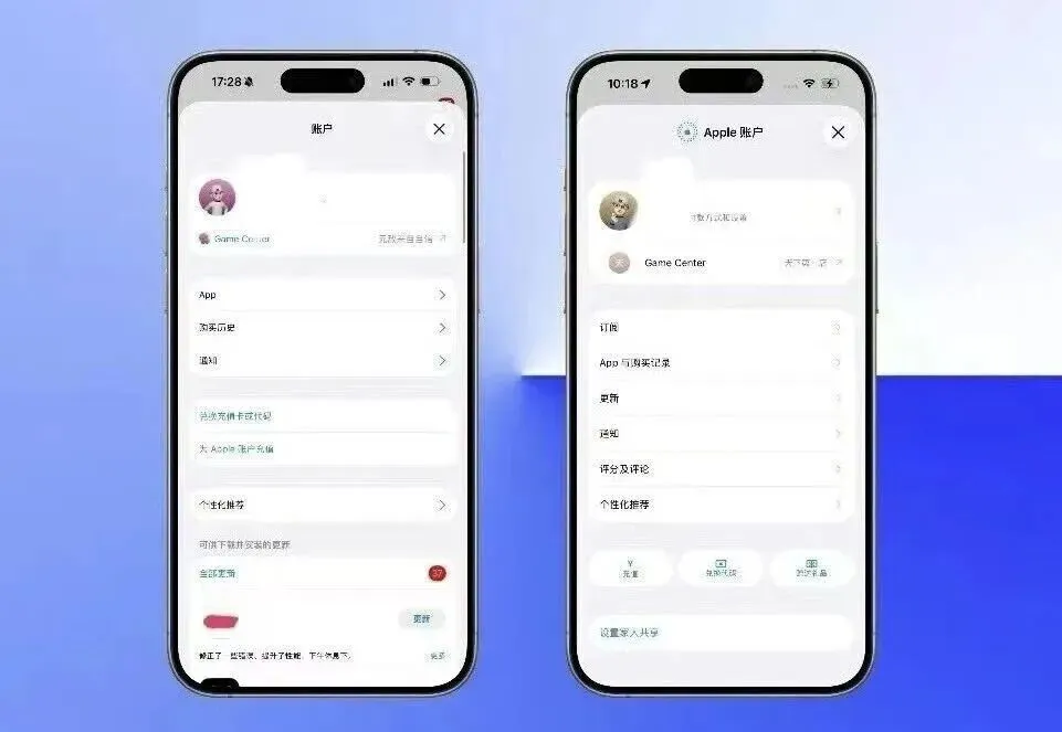 这次版本跟上个之间只隔了五天,进来翻一圈小细节不少,App Store 账号页面先换了样子,右上角头像点进去,布局更清爽,常用的“评分及评论”和“家人共享”抬到更上面,操作路径短了两步。