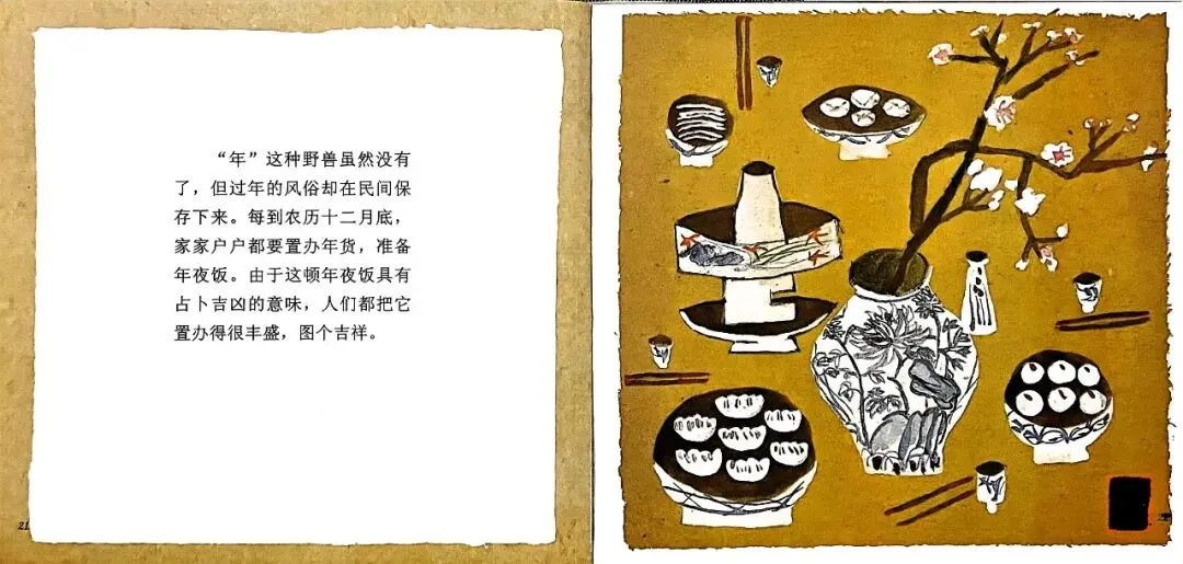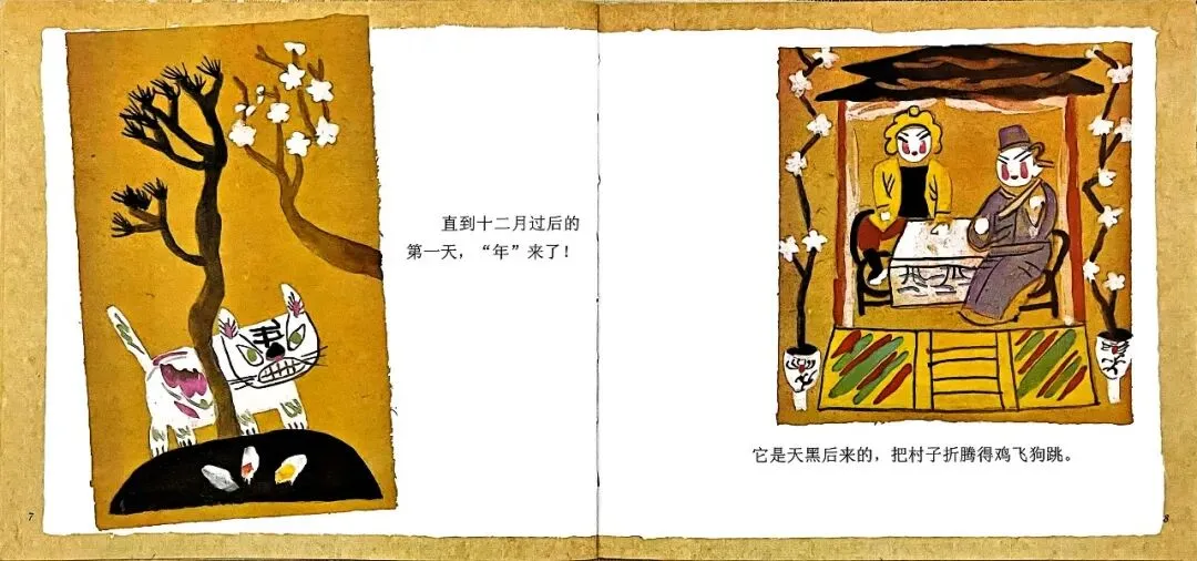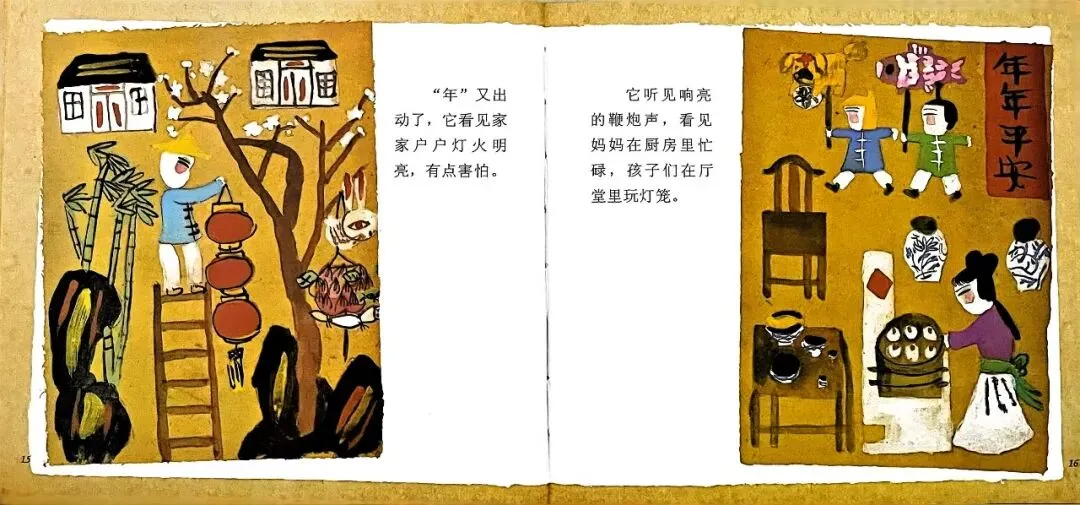 直到十二月过后的第一天,“年”来了!它是天黑后来的,把村子折腾得鸡飞狗跳。