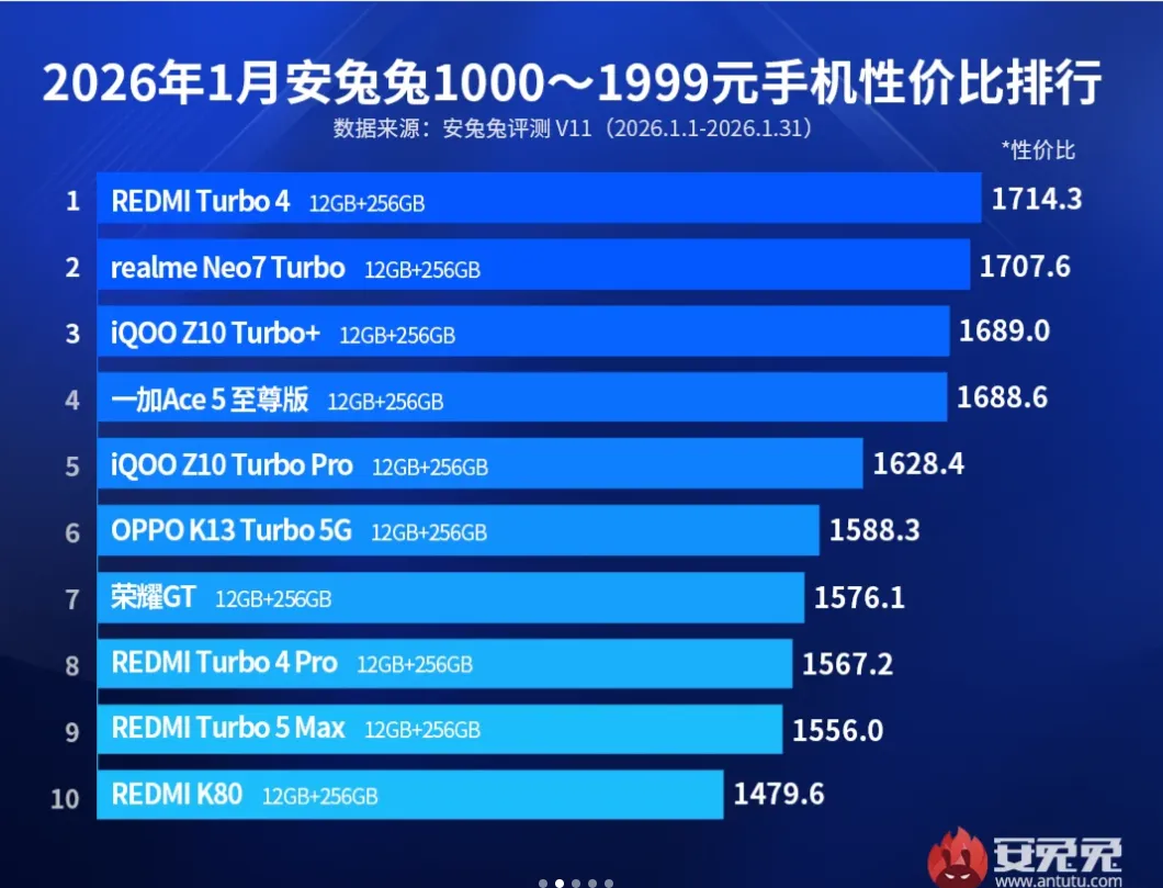 1月安卓手机性价比排行,红米&一加加冕档位性价比之王
