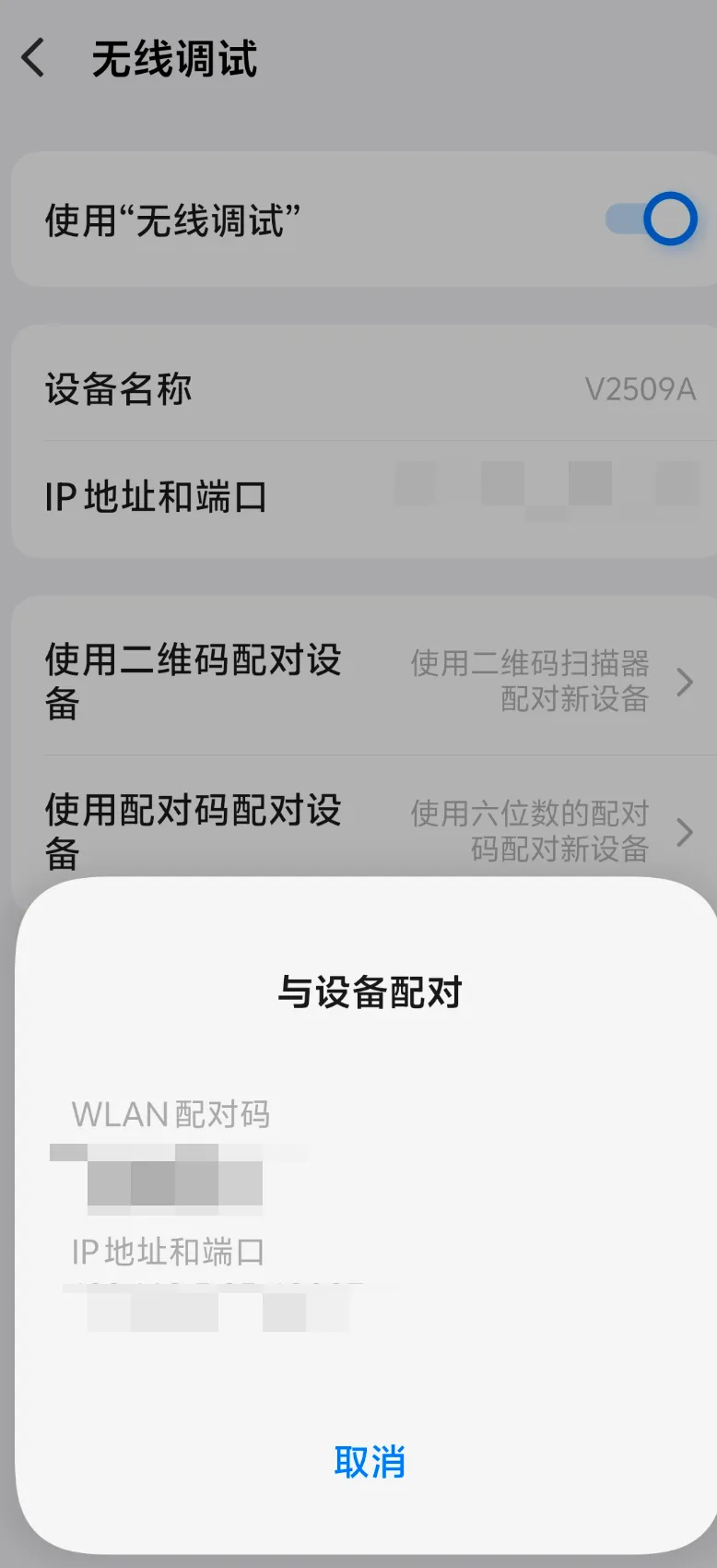 X300的ADB用的不是常用的5555端口,所以需要在这里找到配对码和配对端口(port1)。