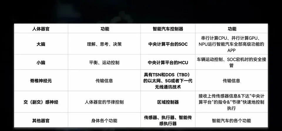 我特别喜欢“大脑”这个说法——你可以把整车看成一副身体:传感器是眼耳,执行器是四肢肌肉,而中央计算平台就是大脑皮层。你想象一下,没有强大大脑,谈什么高阶智驾、舱驾融合、车云协同?