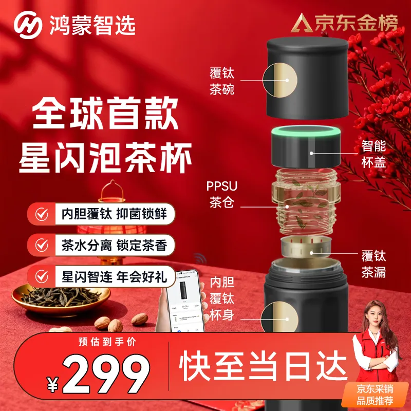 >华为智选鸿蒙智选哈尔斯星闪智能泡茶杯覆钛保温杯450ml男女士送礼伴手礼...