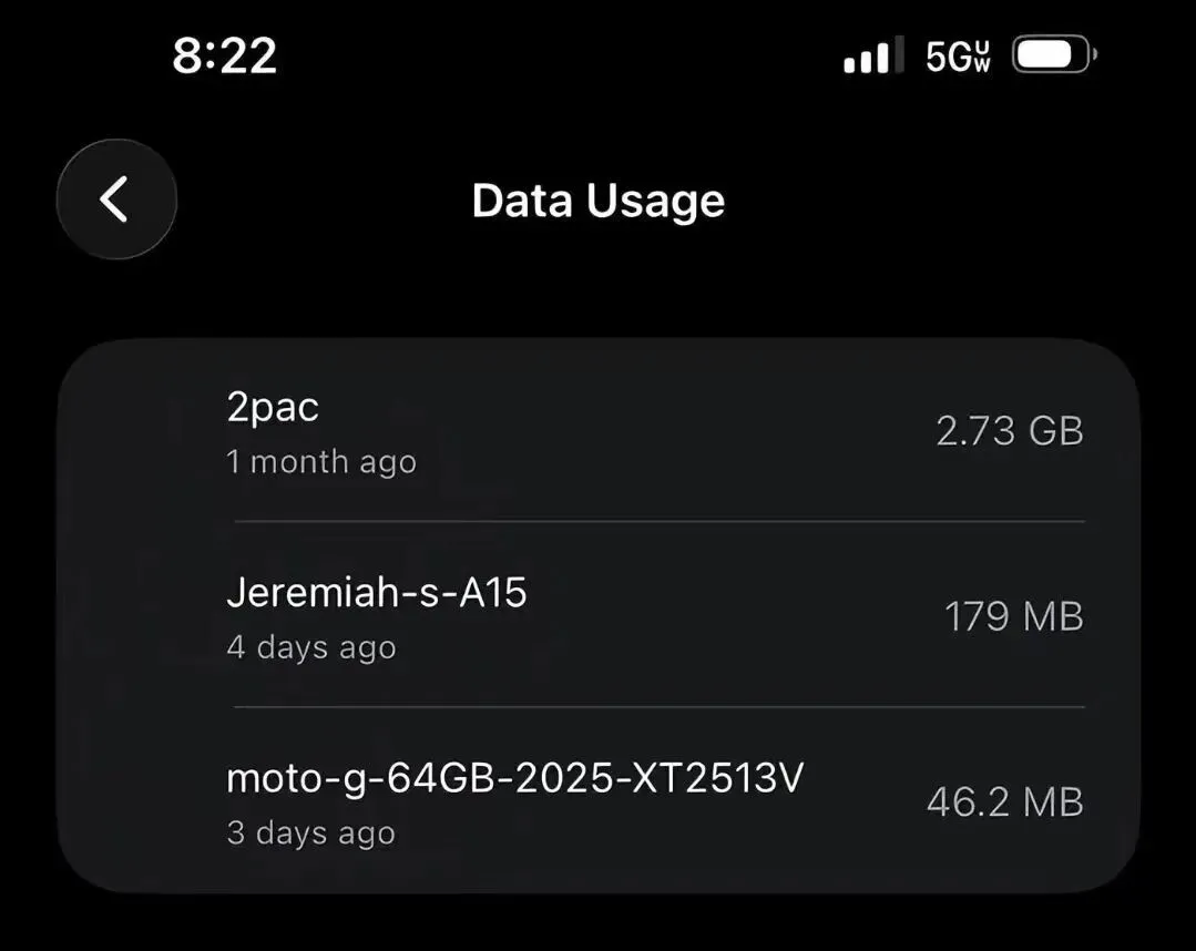 iPhone 的个人热点上线这么多年,界面只给总用量,不给每台设备的明细,流量跑没了想找是谁用的没依据,限额设不了,谁连上谁都能一直用,月套餐一下子见底,提醒没有,异常拦截没有,后台能跑的全跑,等发现时账单早已欠了大几十(简直就是流量刺客),闲着的设备不主动断,锁屏还连着,系统更新云备份都可能在后台走流量,权限这块也不细,别人连上热点就能一直用,根本截不住。