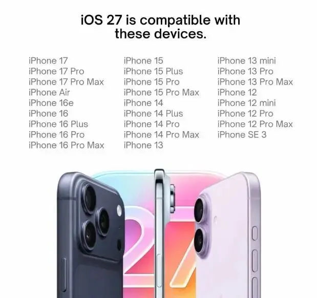 iOS 27的兼容名单终于曝光,机哥扒完第一眼就心疼了——那些攥着iPhone 11当主力机的钉子户,这次真的要和新系统说再见了,彻底断了念想!