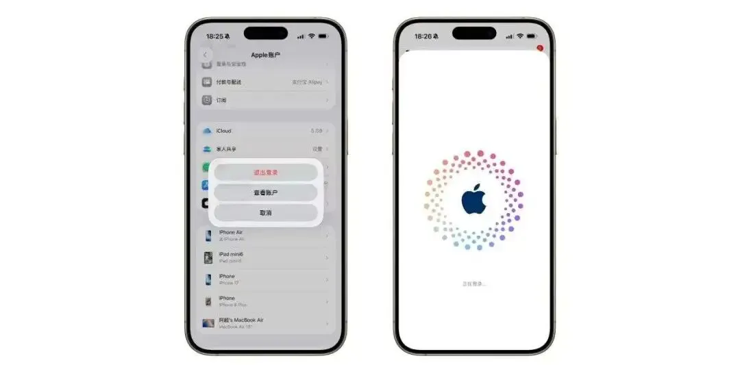 账号能退,路径不在原位,入口藏到系统里去了,先进设置,点最上面的 Apple 账户,进媒体与购买项目,弹出的菜单里有退出登录,退掉之后走同样的路去登另一个账号,这套动作要多点几步,习惯原来在 App Store 里一路滑到底的用户需要适应。