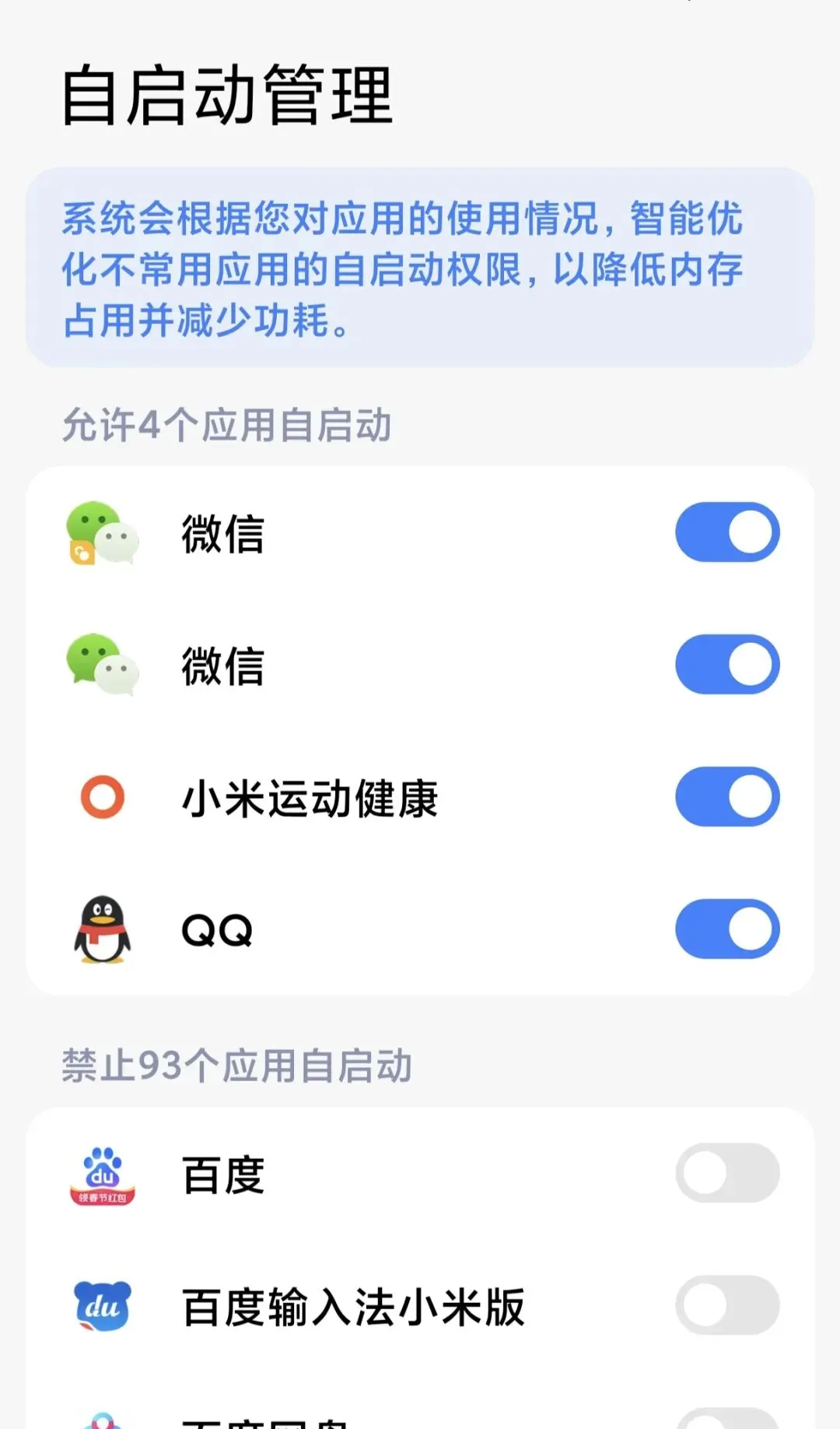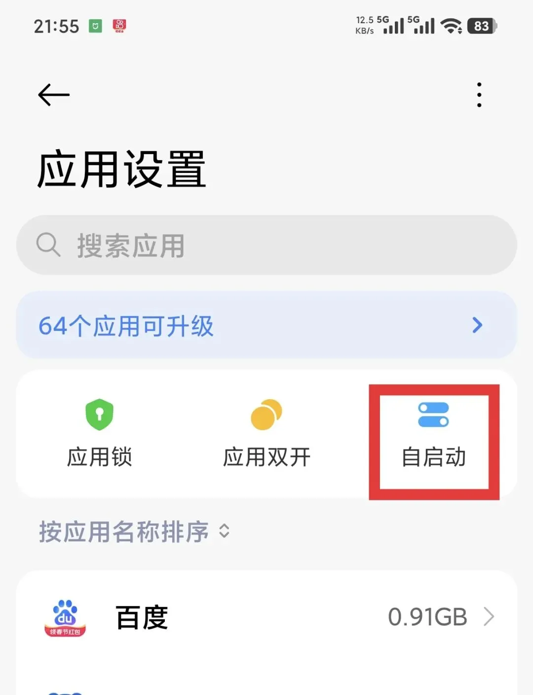 打开设置 → 应用 → 自启动管理,只留微信、支付宝这类常用的,其他全关掉,后台会干净很多。