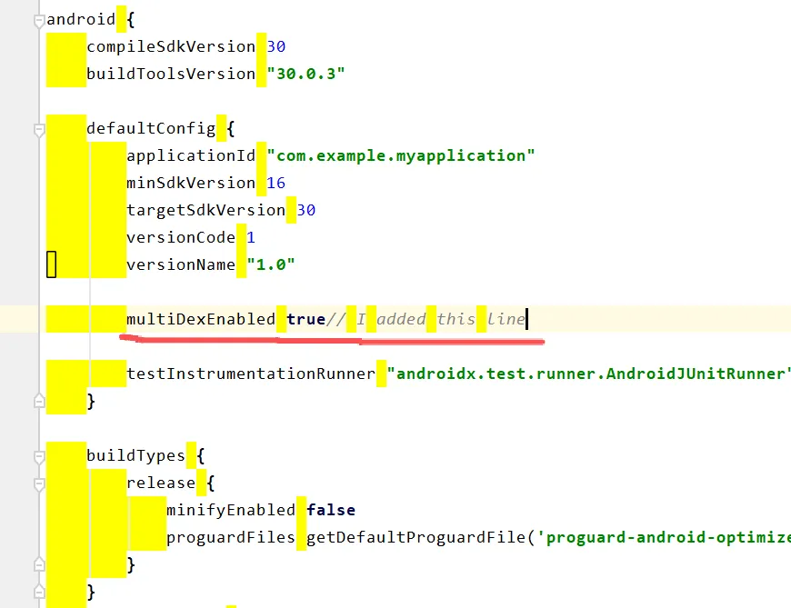 android:name="android.support.multidex.multiDexApplication"