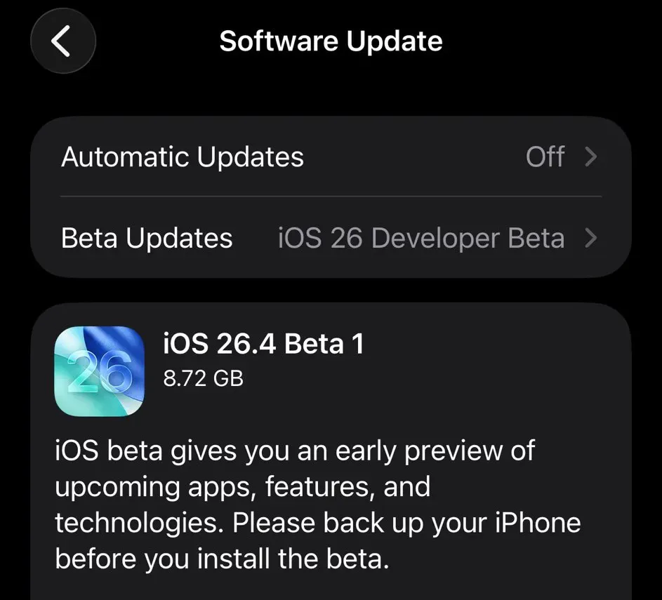 iOS 26.4 Beta 已移除 App Store 退出登录入口,仅可在设置中操作。iOS 26.4 Beta 新增功能: