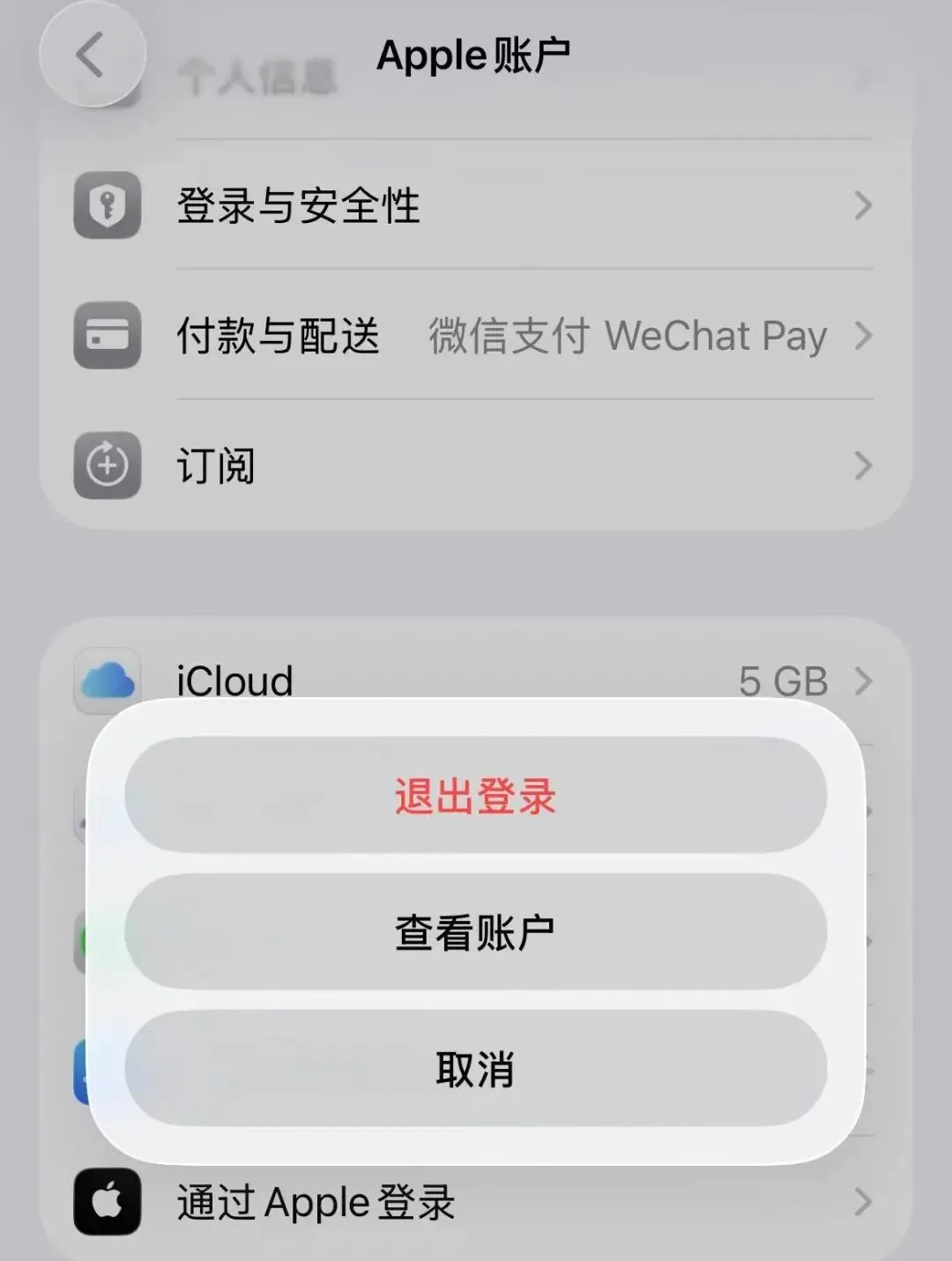 现在想切换账号:必须打开【设置】—点击顶部的【Apple账户】—【媒体与购买项目】才能看到【退出登录】选项。