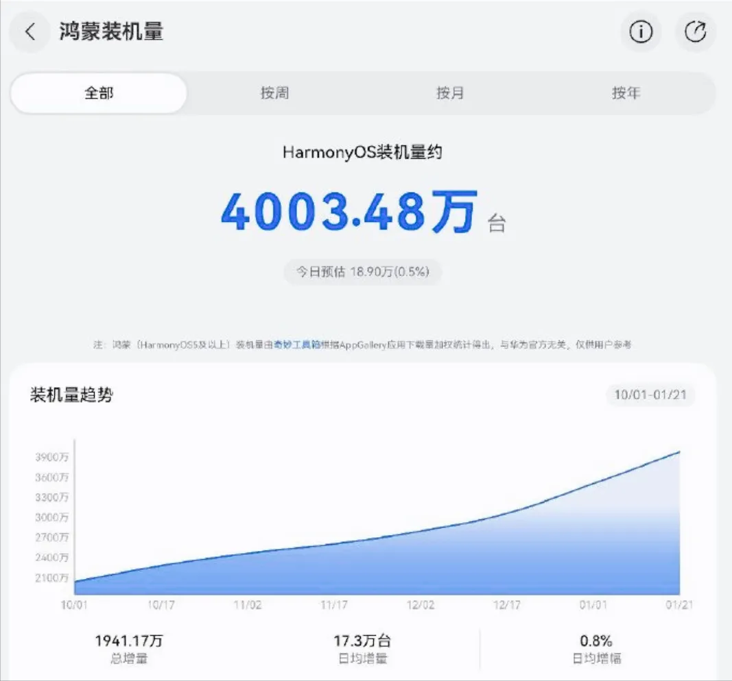 目前设备量已突破4000万,这是一个阶段性成果,但距离成熟生态仍有距离。系统之争从来不是短跑,而是马拉松。