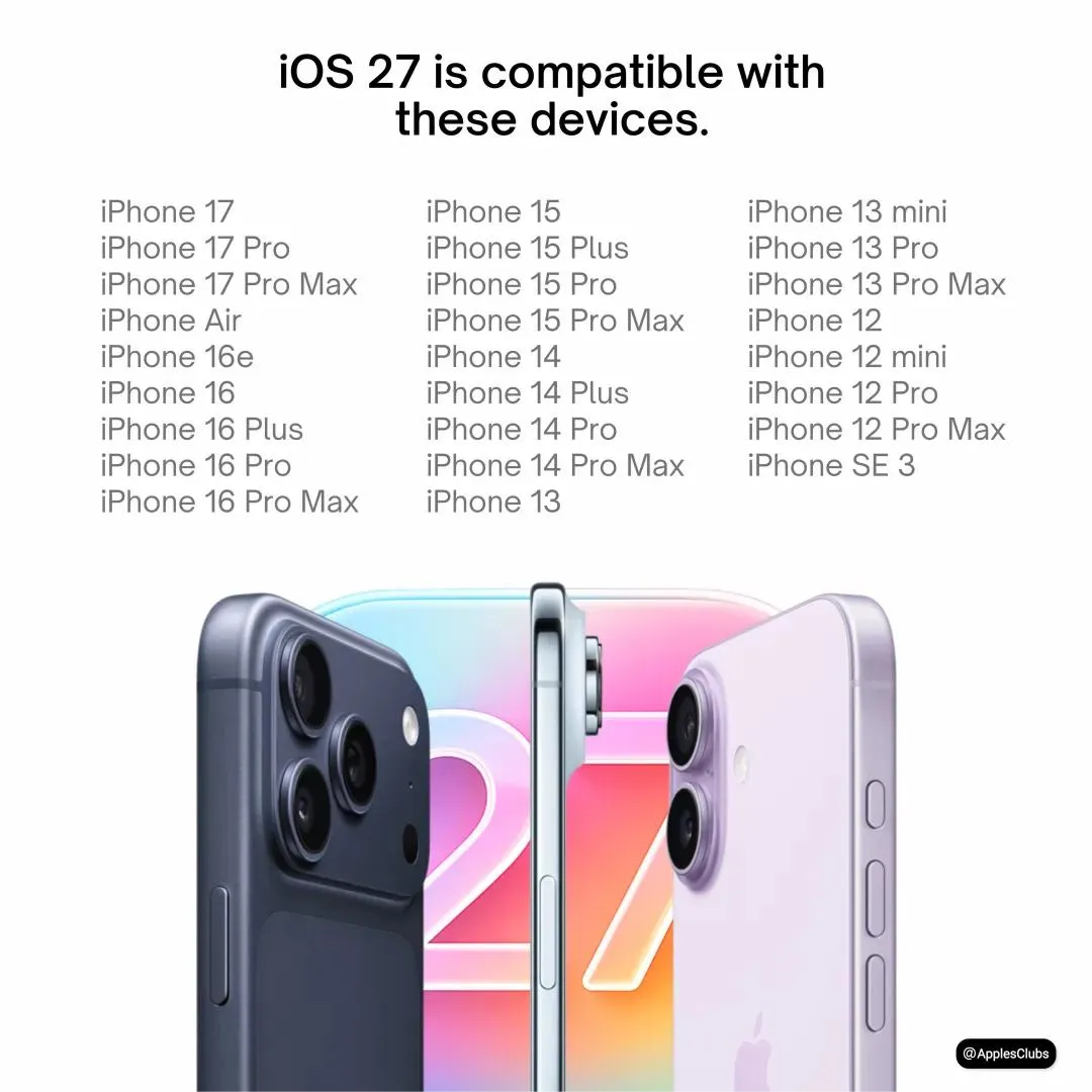 此外,以上为目前爆料的 iOS27 支持机型,iOS 27 的更新门槛基本锁定在 A14 芯片及以上的机型。
