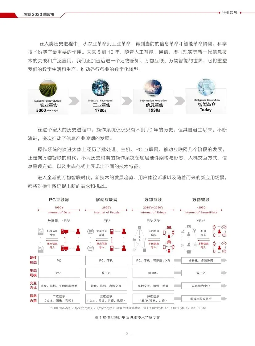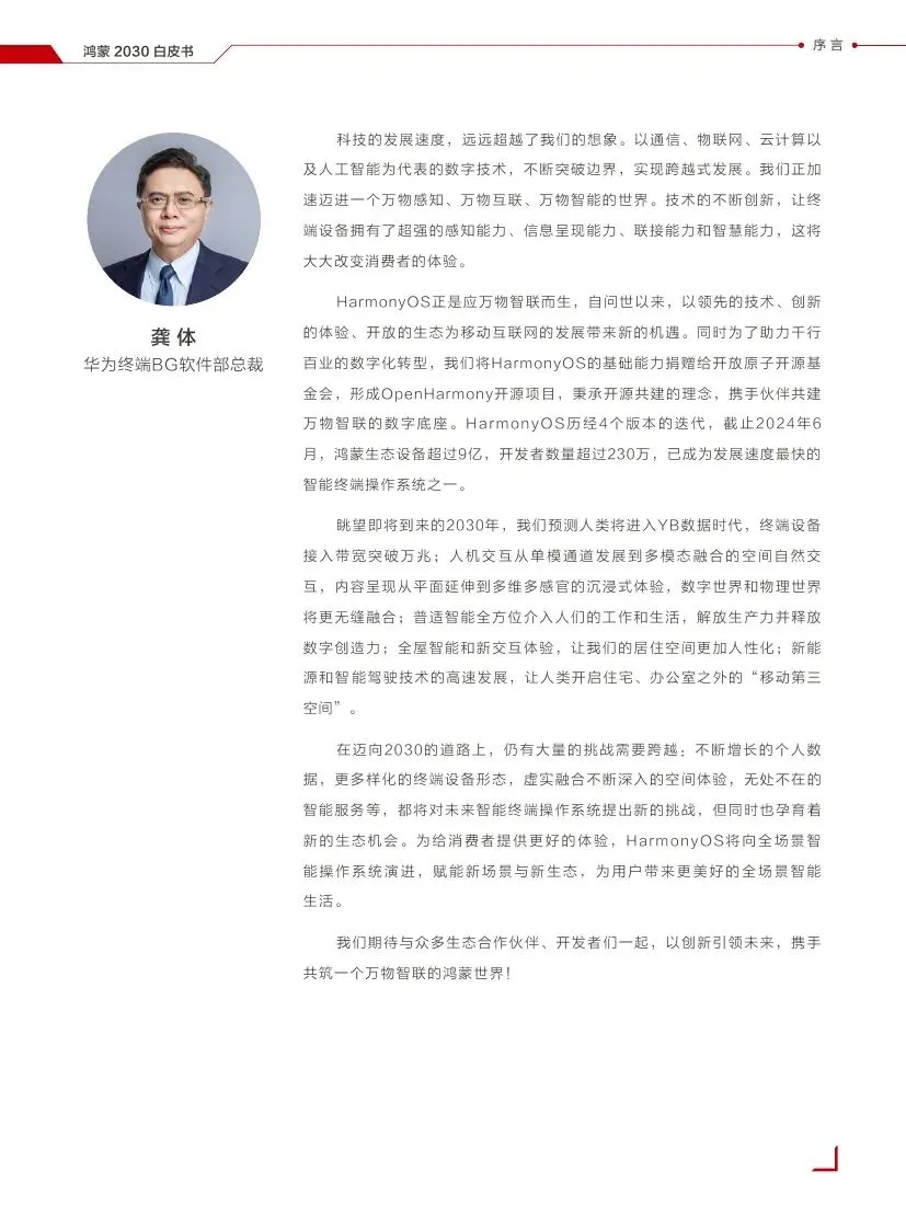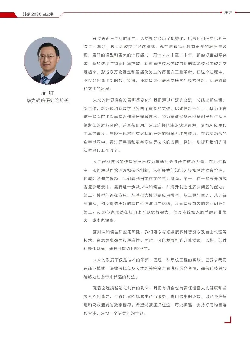 华为发布的《鸿蒙2030愿景白皮书》详细阐述了华为对未来科技发展的展望,特别是鸿蒙操作系统在万物智联时代的角色和愿景。以下是对该白皮书的归纳和总结: