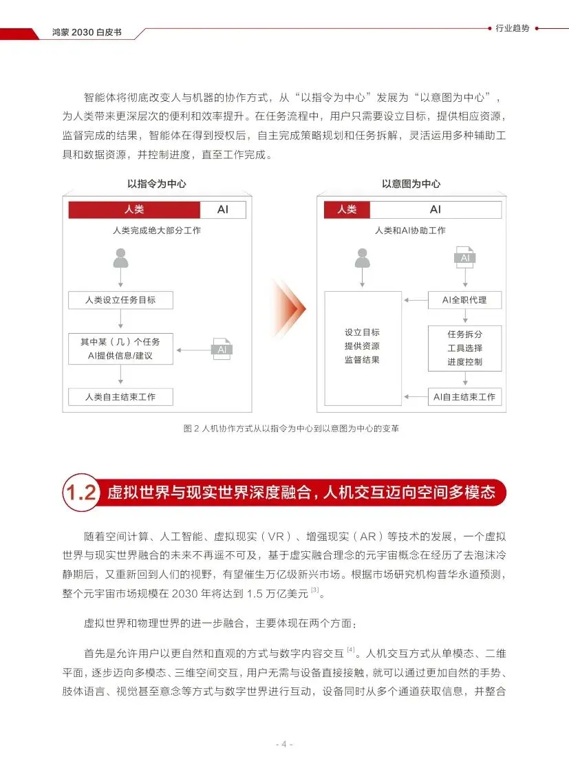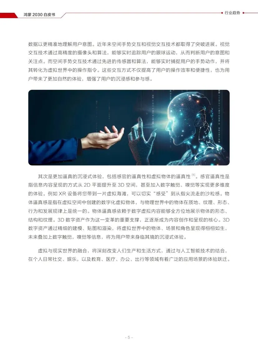 虚拟世界与现实世界将深度融合,人机交互将迈向多模态、三维空间交互,为人们的生产和生活带来深刻改变。