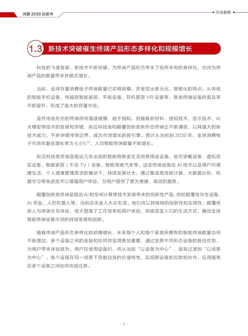 新技术的突破将催生前沿科技类和颠覆创新类新形态终端,推动全球智能终端设备市场的发展。