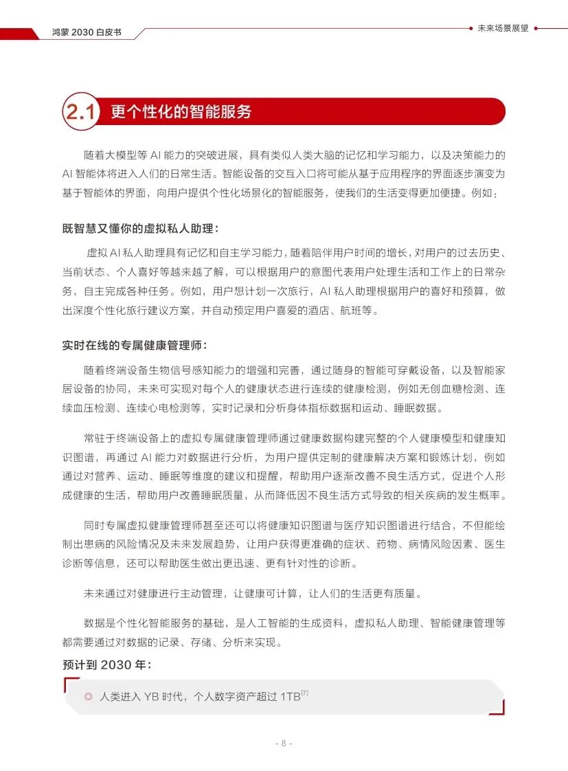 预计到2030年,个人数字资产将超过1TB,家庭机器人将进入千家万户,普及率将超过18%。