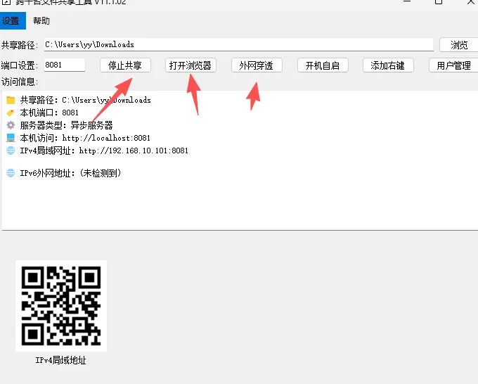 如果觉得复制地址比较麻烦,还可以扫描下面生成的二维码。无论是复制地址还是扫描二维码,都可以在浏览器中打开,进而访问所共享的文件。这种简单直接的操作方式,即使是对计算机技术不太熟悉的用户,也能快速上手,轻松实现文件共享。