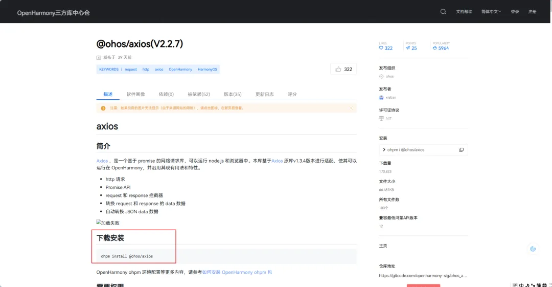 📦 第一步:安装三方库 @ohos/axios