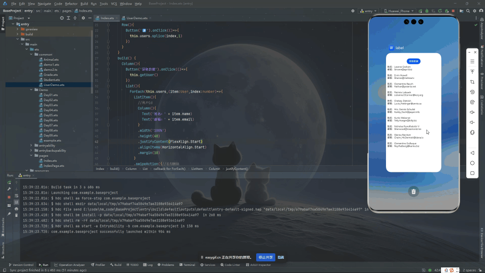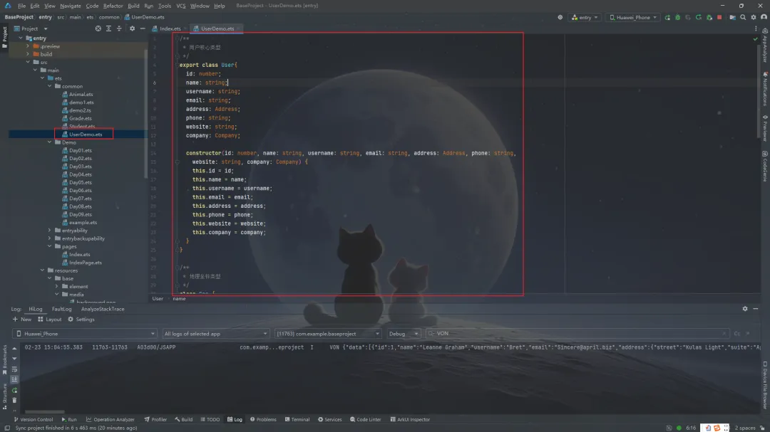 // src/main/ets/common/UserDemo.tsexport class User { id: number; name: string; username: string; email: string; address: Address; phone: string; website: string; company: Company; // ... 构造函数略}class Address { /* ... */ }class Geo { /* ... */ }class Company { /* ... */ }