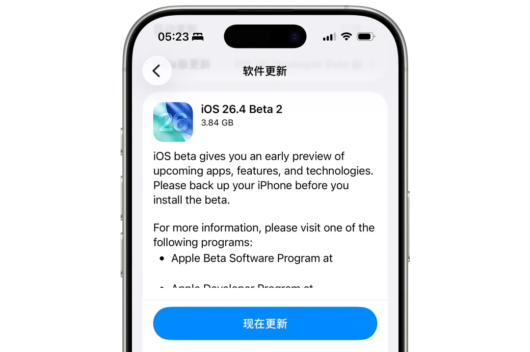 苹果在今天凌晨已经推送了 iOS 26.4 第二个测试版系统,而从体验来看,苹果终于开始发力,对系统不少细节和液态玻璃效果进行了改善和调整。我们现在就来看看本次 iOS 26.4 又有哪些新变化吧!首先是在多个界面下,现在新增了液态玻璃的透明效果,例如「屏幕编辑菜单」和「控制中心二级菜单」,相比之前看起来更加漂亮灵动了。不过值得注意的是,这个新的液态玻璃效果可能在部分界面下会存在遮挡或文字不清楚的情况,需要后期继续优化。现在进入设置 - 辅助功能 - 显示与文本大小页面中,可以看到多了一个「Reduce Highlighting Effects」的功能开关。这个功能翻译过来就是「减弱高亮效果」,从实测来看开启后一些图标周围的高光特效消失了,打开后可能会提升设备流畅度和降低耗电量。现在进入苹果音乐、App Store、播客之类的应用中,在个人中心可以看到顶部的「Apple账户」移到了左边,苹果图标也变成了彩虹色。此外,一些自带的应用也调整了一些界面,例如自带的苹果游戏中心,底部的导航栏变成了液态玻璃的整条显示,而不是和之前一样独立搜索按钮。此前在上个版本中 Lightning 接口的老款 iPhone 无法正常激活 PD 快充的问题在此版本中实测已经修复,目前已经可以正常使用快充了。毕竟是 Beta 版本,所以此版本依然存在了一些新的 BUG,例如编辑主屏幕后右上角的「编辑」按钮会卡在哪里不动,下拉锁屏的渐变效果消失等等。可以看出苹果还在打磨 iOS 26.4 版本,虽然依然有不足,但起码在一点点改善,不过就从目前的情况来看,我依然不建议普通用户去更新这种测试版系统,毕竟遇到奇怪问题那都是很常见的。