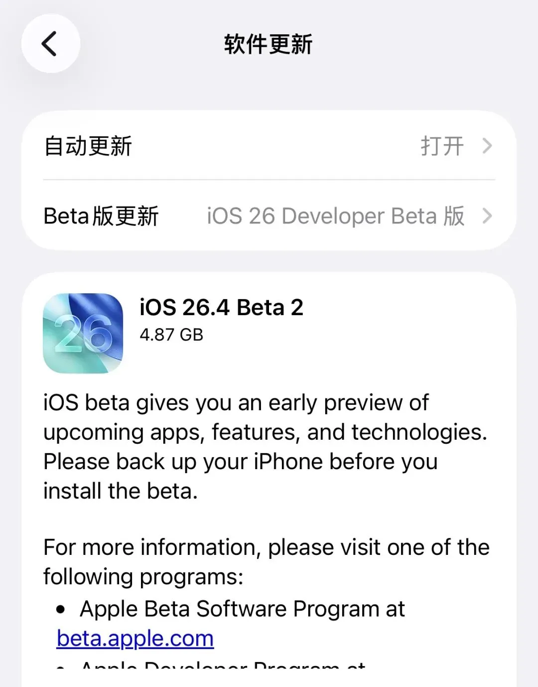 iOS26.4B2版本发布!修复iPhone老设备不能快充的问题!
