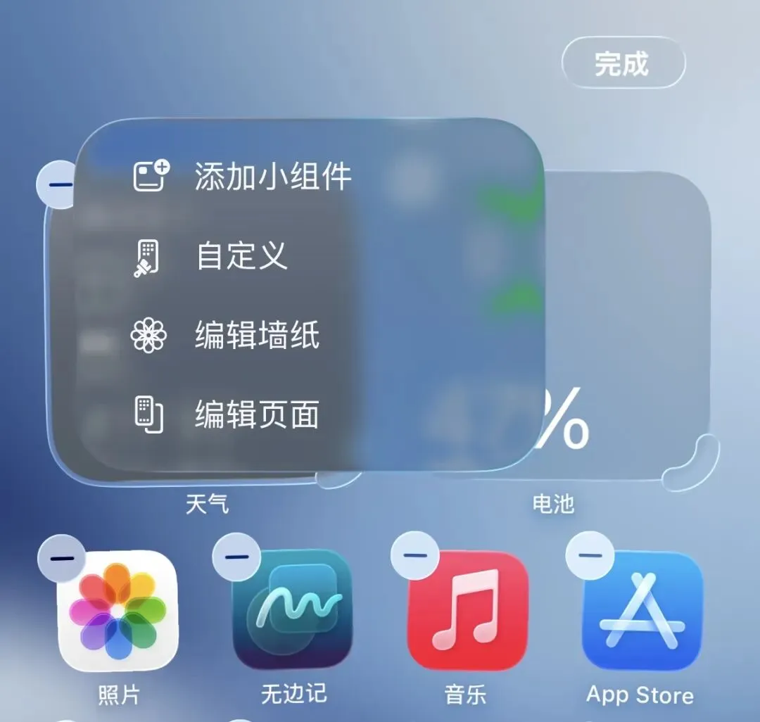 iOS 26.4 Beta 2 主要是针对部分界面有一些小调整,包括液态玻璃也有改进,主屏幕左上角的编辑菜单现在也有了液态玻璃效果。