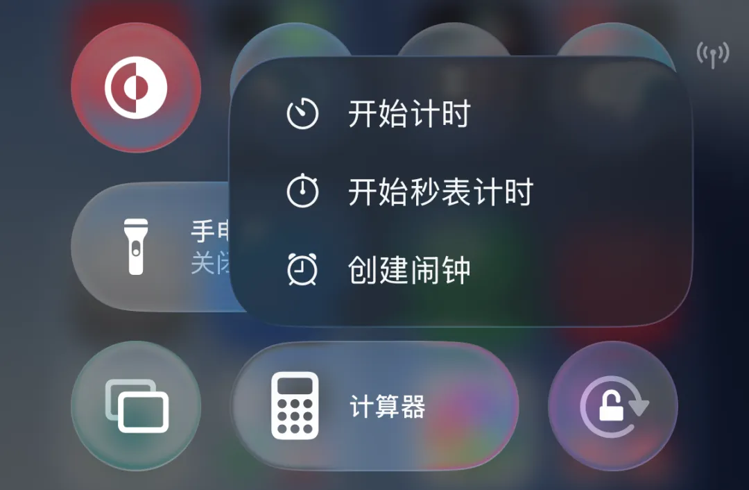 控制中心长按菜单,也添加了液态玻璃效果。