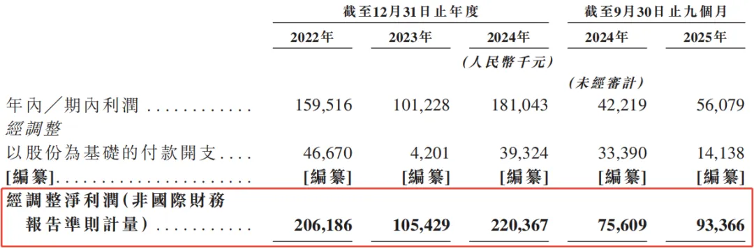 在剔除不会引起现金变动的项目后,从2022年至2024年,公司的经调整利润分别为2.0亿元、1.0亿元及2.2亿元。2025年前三季度的经调整净利润为9336万元,同比增长23.5%。