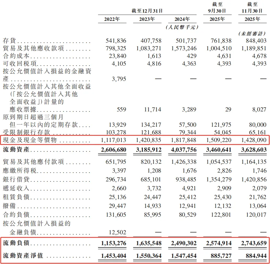 在营运资本方面,公司的现金储备相当充裕,截至2025年11月30日,现金及其等价物为14.3亿元。同时,公司的负债水平较低,截至同期,流动负债总额为27.4亿元,流动资产净值为8.8亿元。