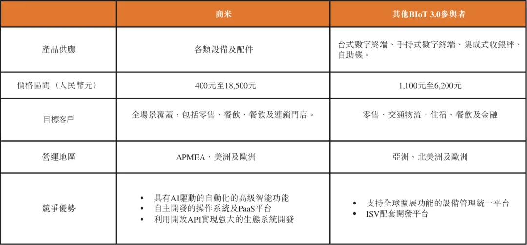 根据灼识咨询数据,2024年商米科技以 11% 的市场份额稳居全球安卓端 BIoT 解决方案榜首,超越了众多运营数十年的老牌企业。其业务覆盖200多个国家和地区,服务全球前50大食品饮料企业中逾70%的企业,在中国实现70%以上的餐饮百强品牌覆盖和60%以上的百强连锁商店覆盖,全球化布局优势显著。