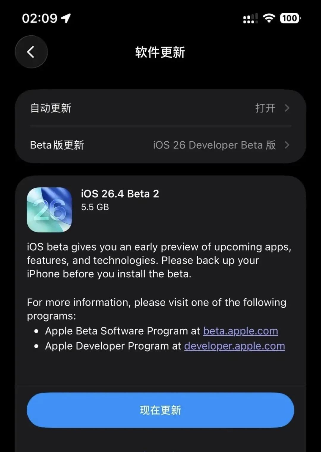 另外,苹果在 iOS 26.4 Beta 2 对参加测试版的机制进行了改进。
