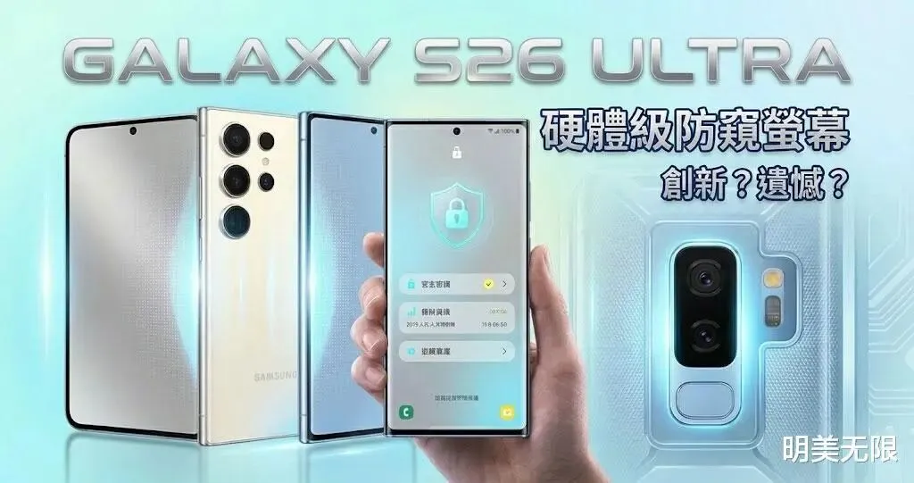 在所有升级中,最具话题性、最令行业震动的,无疑是Galaxy S26 Ultra独占的硬件级防窥屏技术。三星在发布前已通过官方预热短片正式确认了这一功能的存在,而提前流出的真机实测则向世界展示了它的真实表现。这项技术基于三星显示在MWC 2024上展示的Flex Magic Pixel方案,通过在OLED屏幕内部植入可控视角的光学微结构,从物理层面精准收窄屏幕的可见角度。从正面观看,屏幕亮度和色彩毫无影响;当视角偏移至30度时,屏幕内容开始变暗;超过45度后,旁人看到的几乎只剩一片黑色。更令人惊叹的是,三星将这种防窥效果做成了智能且局部的——密码键盘、银行账户余额、私密通知等敏感区域可以精准启动防窥保护,而屏幕其他区域依然正常显示。手机还能通过前置摄像头和麦克风感知周围环境,在检测到公共场合或陌生视线时自动触发防窥模式。与市面上那些需要贴膜、会降低亮度和触控灵敏度的传统防窥方案相比,S26 Ultra这套硬件级方案代表着一个质的飞跃。值得注意的是,这项功能目前是S26 Ultra的独家专属,标准版S26和S26+均无法体验,Ultra的差异化价值再次得到了有力佐证。