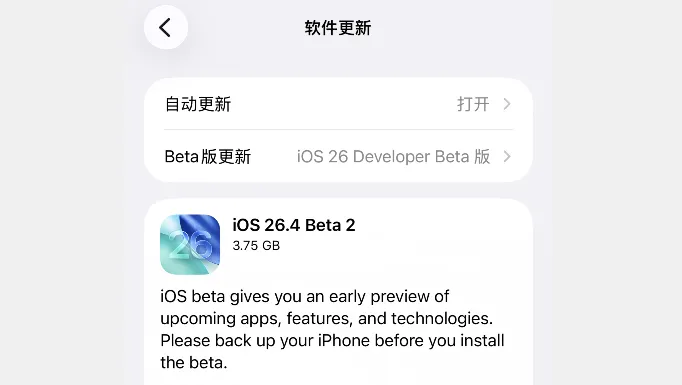 iOS 26.4 beta 2 更新内容: