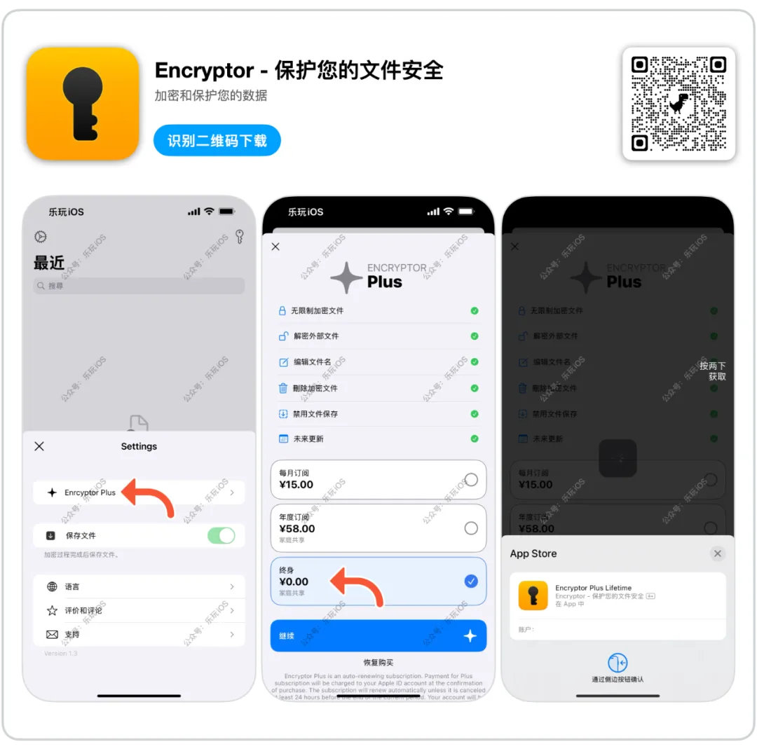 点击「Encryptor Plus」,点击「终身¥0.00」