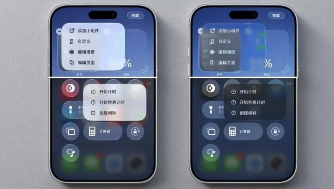 iOS 26 主打的液态玻璃设计继续打磨,桌面长按进入编辑,半透明菜单的质感更润,深色模式里控制中心的背景黑更纯,这种变化要亲眼看才有感觉,游戏里搜索栏位置从底部挪到顶部,App Store 的账户页图标换成和系统设置一样的彩虹色 Apple Account 标记,界面整齐度更统一。
