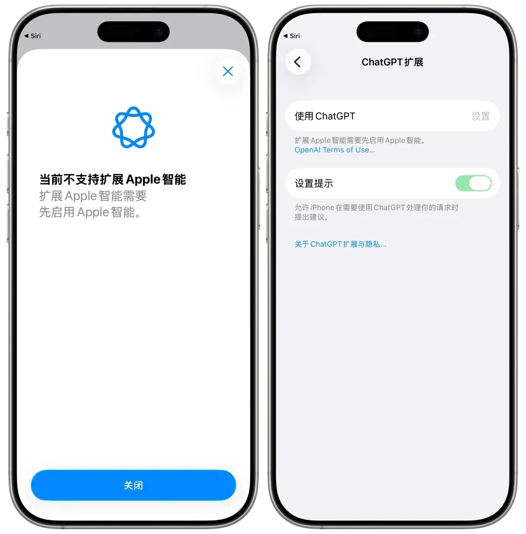 对于国内用户最关心的 Apple 智能(Apple Intelligence) 落地进展,近期社交媒体上有不少讨论。有网友发现,通过对 Siri 说出特定语音指令,可以触发 ChatGPT 扩展的设置界面入口。