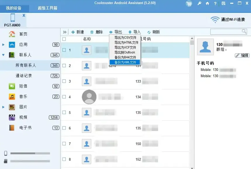 数据备份和恢复:可以备份Android设备上的各种数据,包括联系人、短信、照片、视频、音乐、应用程序等,并支持将备份的数据恢复到设备上。文件管理:可以在电脑上直接管理Android设备上的文件和文件夹,包括添加、删除、复制、粘贴、重命名等操作。应用程序管理:可以通过Coolmuster Android Assistant安装、卸载和导出Android设备上的应用程序,并支持将应用程序批量导入设备。音乐和视频管理:可以将音乐和视频文件从电脑传输到Android设备上,并支持将设备上的音乐和视频导出到电脑上。短信管理:可以直接在电脑上查看、发送和删除Android设备上的短信,并支持将短信导出为HTML、CSV或TXT文件。联系人管理:可以在电脑上导入、导出、添加、删除和编辑Android设备上的联系人,并支持将联系人从设备导出为VCF或CSV文件。