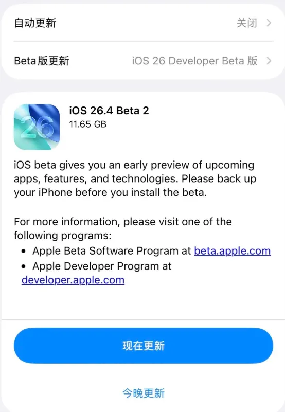 这几天苹果把 iOS 26.4 的第二个测试版推给开发者,更新说明还是那套说法,修修一些已知问题,系统稳定性更稳一些,眼尖的开发者盯着代码和手感去试,侧滑返回这个全局手势在应用里的反应更顺了,视觉反馈跟上手指,滑着滑着有点像早期全面屏 iPhone 那种跟手味道。