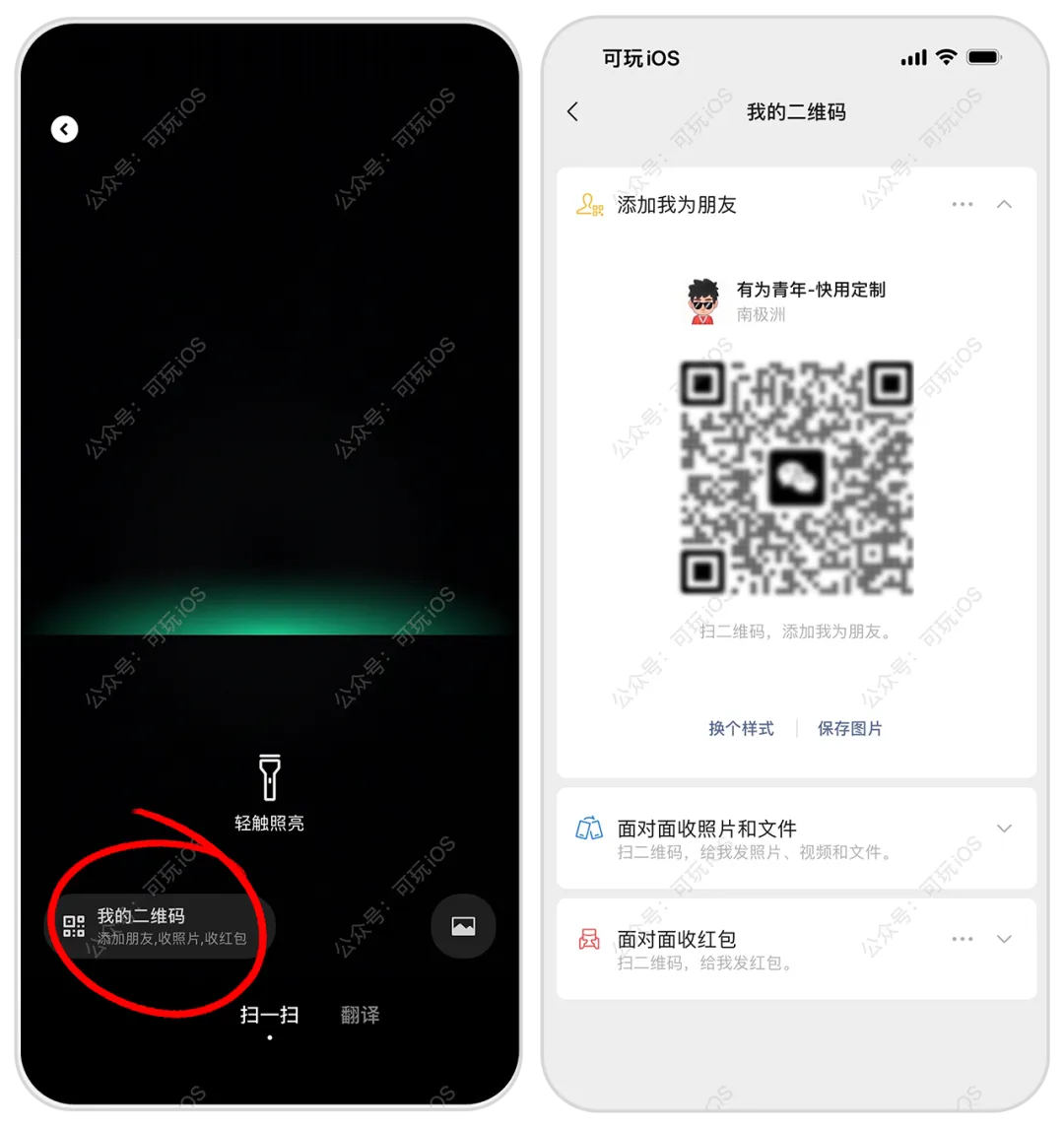 大家好呀!可玩ios今日恢复正常更新,小编给大家拜个年,祝大家新的一年新的气象,恭喜发财!微信又悄悄更新了,灰度上线了两个功能,"面对面收文件"和"面对面收红包"功能.微信主页右上角 + 号,点击 扫一扫,即可进入功能页面.不需要添加好友,不需要Wi-Fi,不需要网络,传输过程走的是局域网直连(Wi-Fi Direct 与蓝牙辅助),全程在本地完成。这意味着你不仅不需要消耗一点点移动网络流量,而且传过去的照片和视频绝对不压缩,单次甚至能传最大 2GB 的文件!这个功能非常Nice,可以跨系统传输了.把原面对面红包整合到这里,扫码即收、可自动到账,支持普通/拼手气,不用加好友、不用点领取,婚礼、活动、邻里往来更体面,隐私与效率都拉满。
