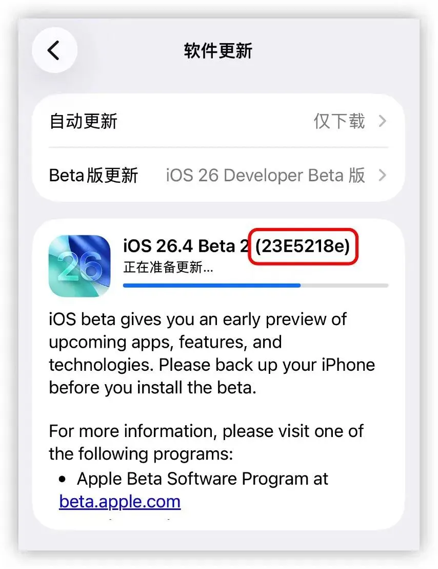 iOS 26.4 Beta 2 的系统版本号为 23E5218e,距离上次更新一周之隔。两版里都有不少新东西,这次就把 Beta 1 和 Beta 2 的变化一起讲清楚。