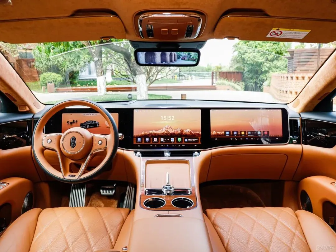 车内也非常奢侈,看齐尊界S800,采用了绒霞紫内饰配色,配有NAPPA头层真皮座椅、天然实木饰板、晶钻切工水晶的旋钮等高端材质。配置同样很顶,目前已知会配备二排真双零重力座椅,支持45度、90度和180度多角度旋转,更有首创的怀抱式安全气囊。