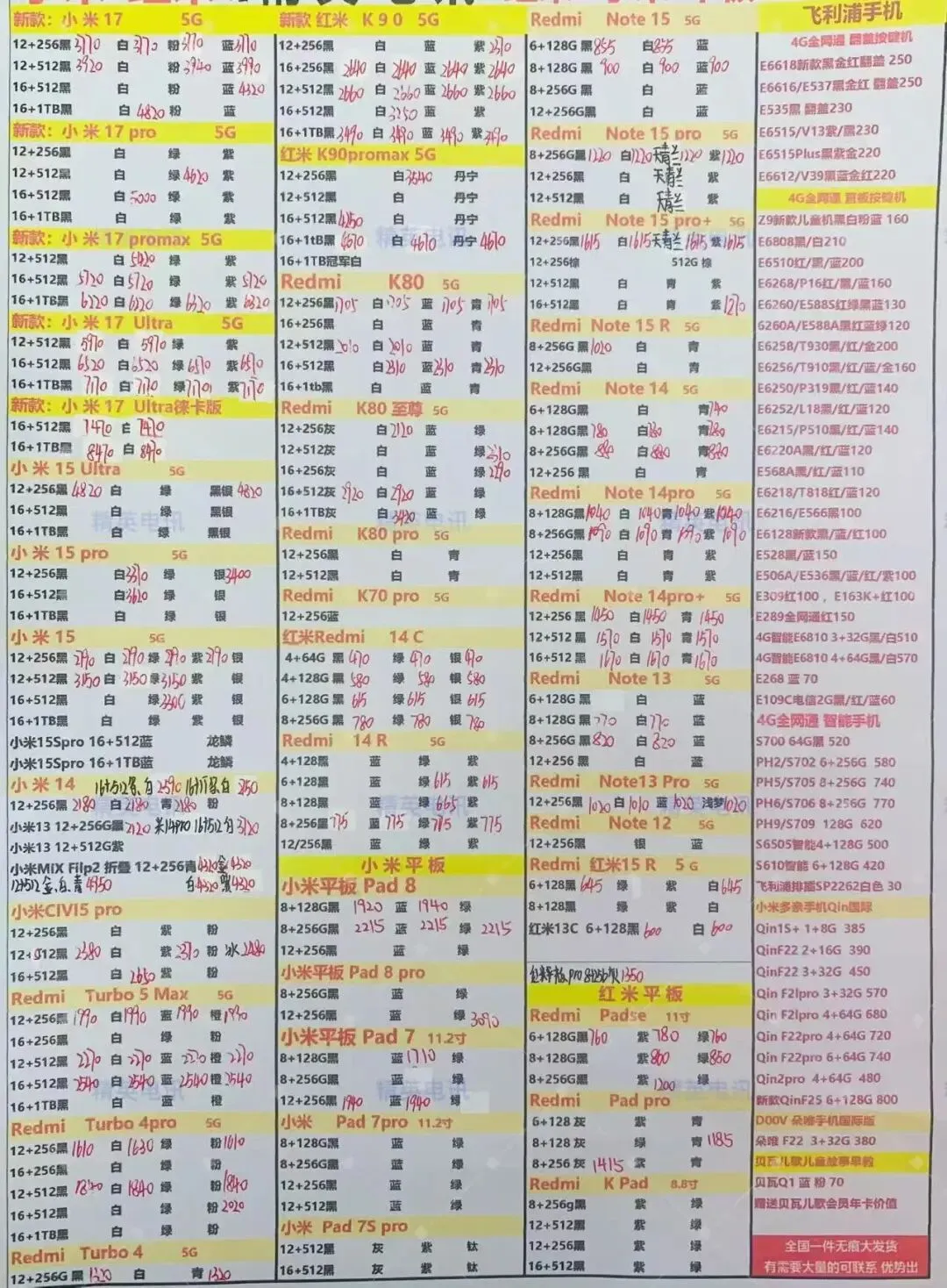 以下报价都是深圳华强北手机批发市场当天的最新批发价格(不含税),报价是我们的批发底价,零售拿货价格需加20~100元不等,京东包邮(量大价格可谈)