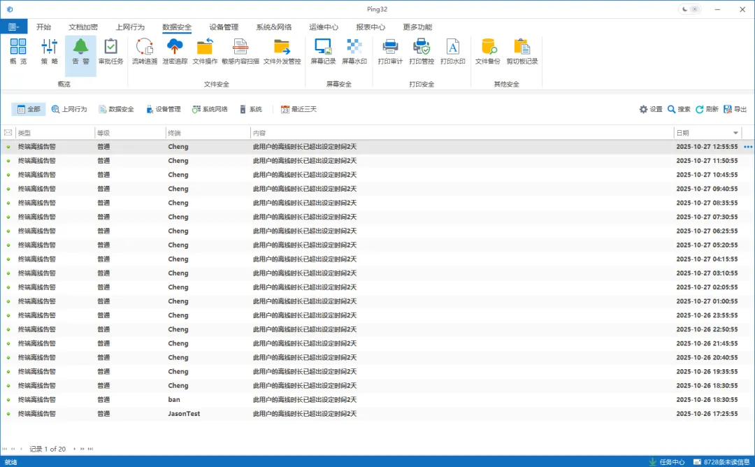 A:这正是Ping32的核心优势之一。您在生成加密外发包时,可以给每个文件植入唯一的数字指纹,包含接收人信息、授权时间、设备信息等。一旦文件在外部流转,您可以通过后台实时追踪到它被谁、在什么时间、哪台设备上打开过。我们还支持设置“阅后即焚”模式,文件被打开指定次数后自动销毁。如果发现异常传播,可以一键收回权限,让文件彻底失效。这种溯源能力在服务律所、设计院和咨询公司时特别受欢迎,曾帮助多家客户成功追查到泄密源头。