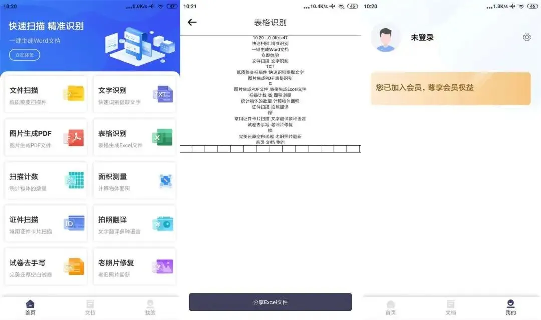 扫描Pro是一款支持图片转PDF转文字、扫描转表格、文字提取、证件文件扫描等多用途的扫描工具。识别结果自动存为历史记录,文档保存无水印,查找方便,支持高质量的PDF、Word和TXT分享导出,支持文字翻译功能,方便快捷,已解锁VIP。