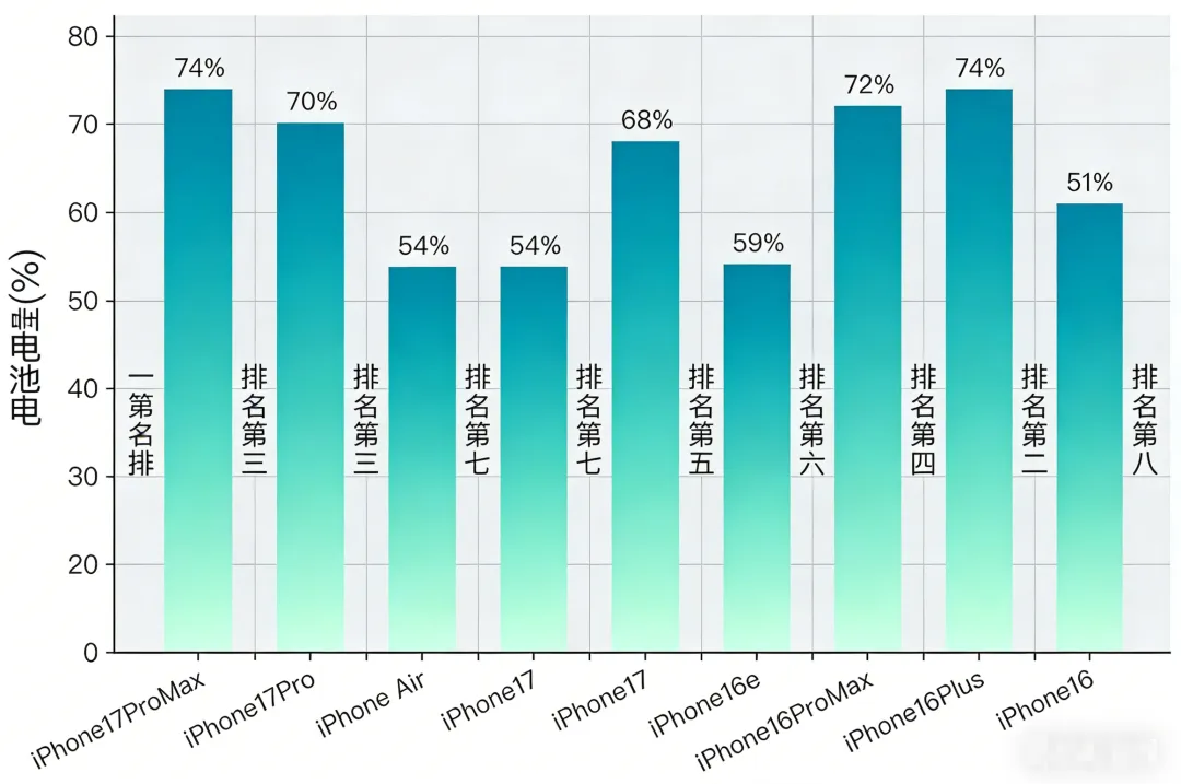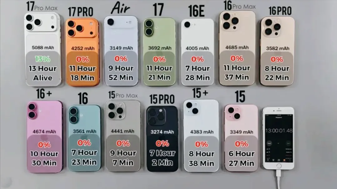 为了帮大家避坑,我专门去扒了一份涵盖了 9 款主流 iPhone 的极限续航拉锯战测试。