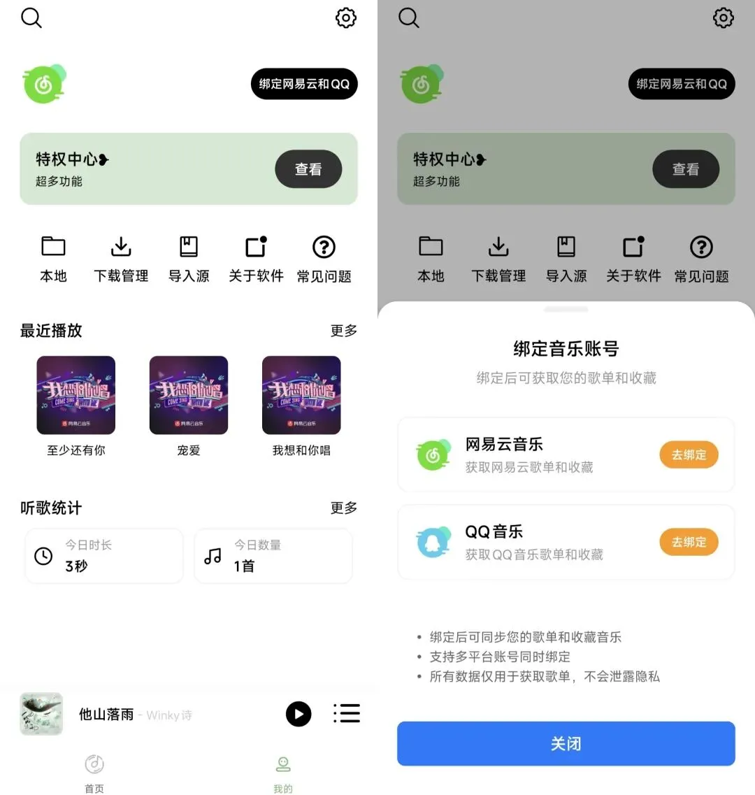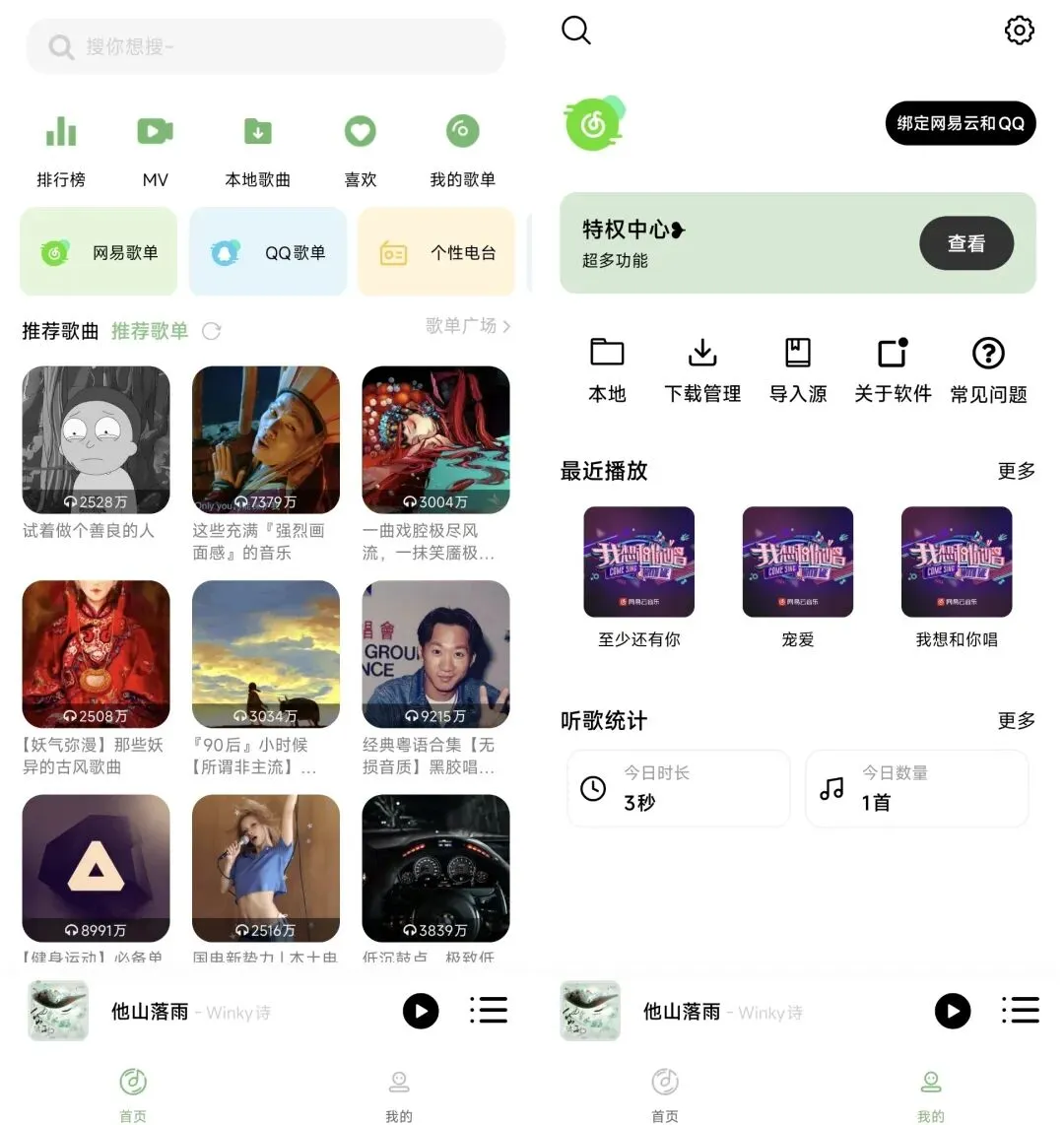 我们也可以把之前使用的听歌软件的歌单导入到这个软件里,支持网抑和扣扣两个平台