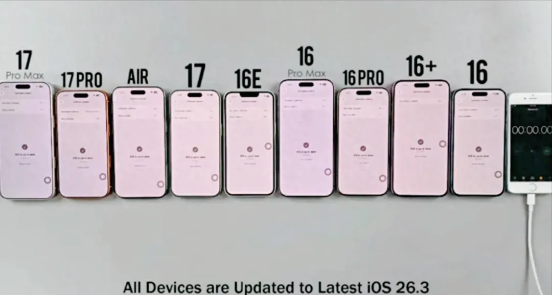 这次国外博主一共测试了9款机型,从iPhone16系列到iPhone17系列全部覆盖。