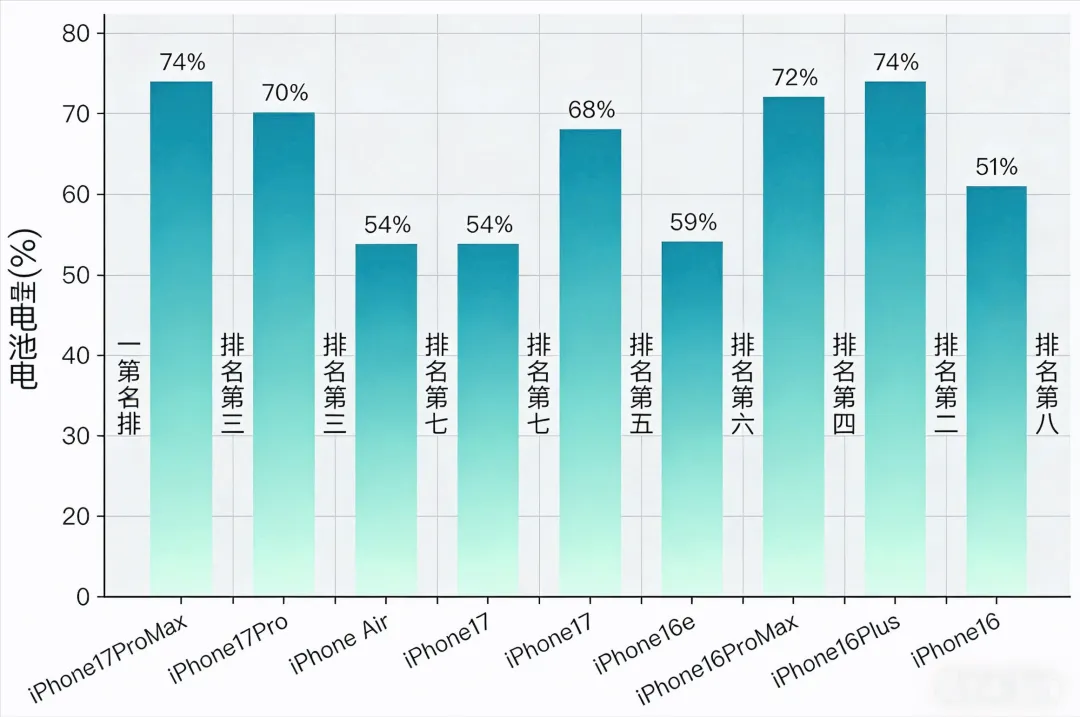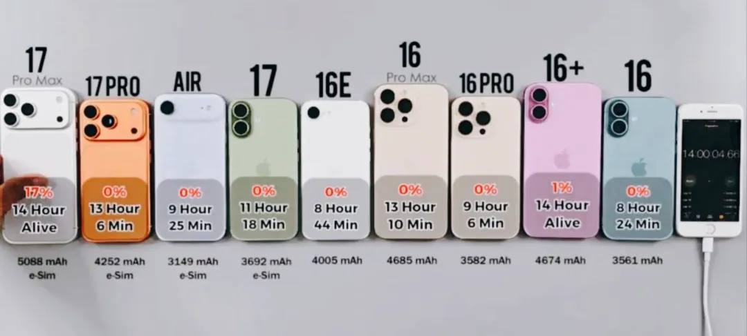 iPhone17ProMax在连续使用14小时后仍剩余17%电量,成为绝对赢家;
