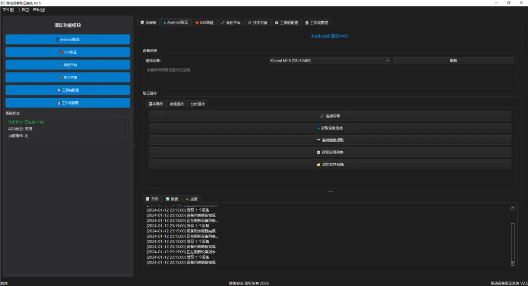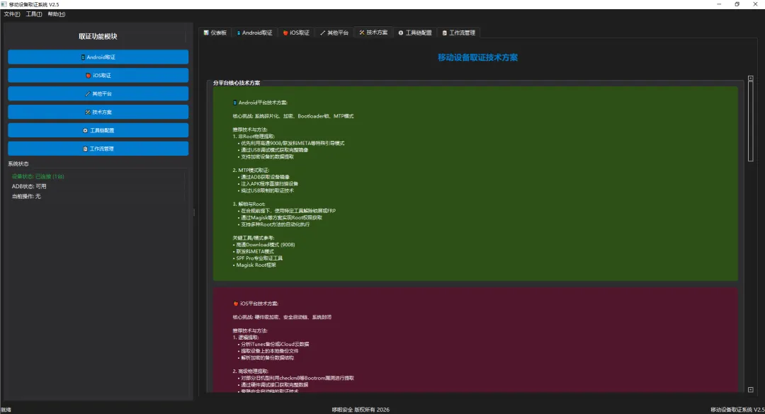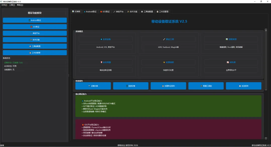 移动设备取证系统是一款专业的移动设备数据取证工具,支持Android、iOS等多平台设备的取证分析。