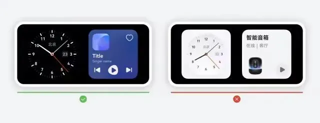 沉浸视觉这条盯的是色彩,卡片和用户的环境壁纸合到一起,画面要连成一体,卡片里不去大面积铺很亮的浅色块,屏保背景多数偏暗或者色彩比较丰富,大亮面一铺上去,眼睛看过去分层明显不顺畅,做法是拉一拉对比度,微调饱和度,内容的识别度还在,卡片像是从屏幕里长出来,画面一体化不出跳。