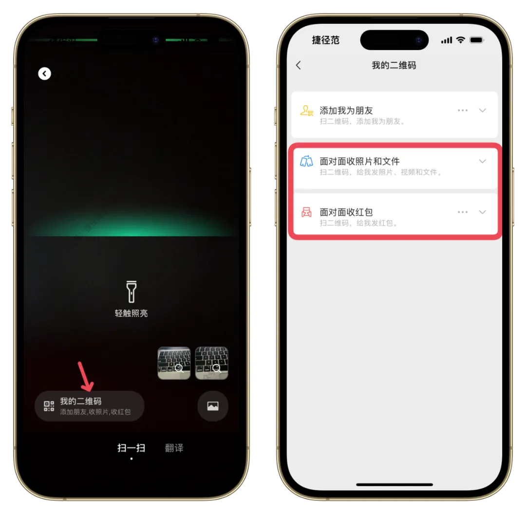 面对面发红包也是类似,不需要加好友,展示一个临时的二维码就可以给对方发红包。